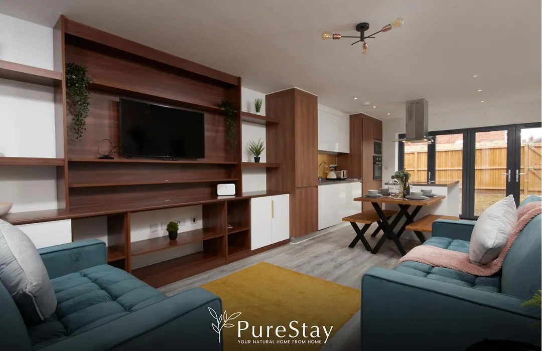 Die 2-Zimmer-Villa Luxury 5-Bedroom Manchester House Sleeps 9 With Private Garden By Purestay bietet eine Terrasse und liegt etwa 15 Autominuten von der Chetham's Bibliothek entfernt.